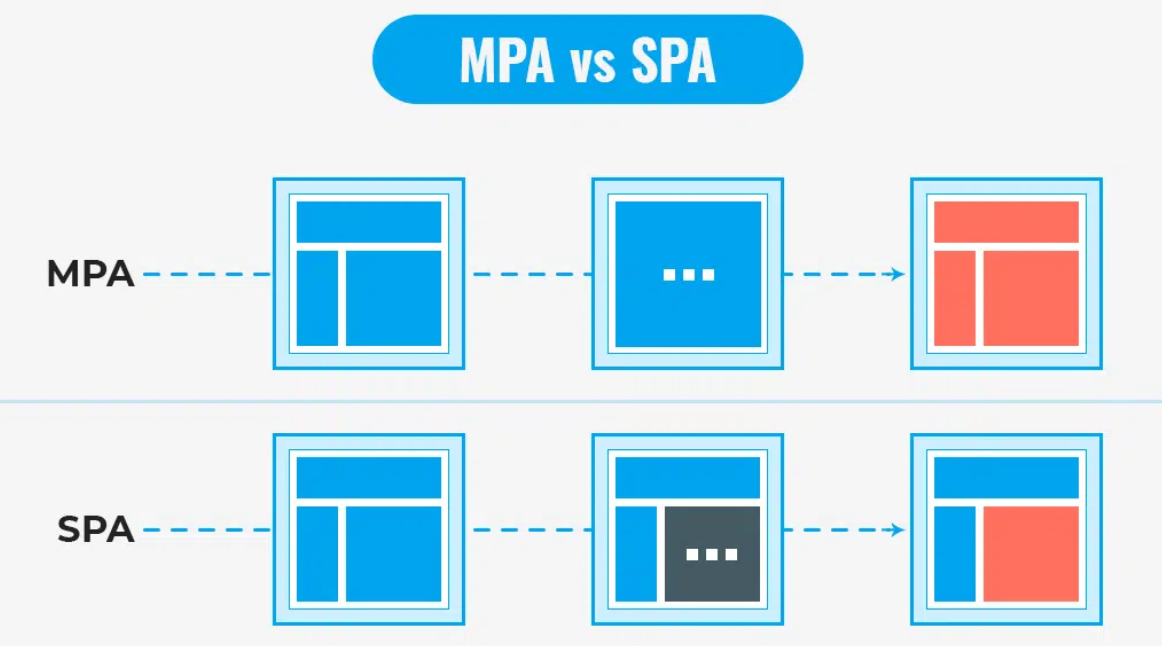 - MPA는 각 페이지 요청마다 서버에서 새로운 HTML 페이지를 로드하는 방식이다.